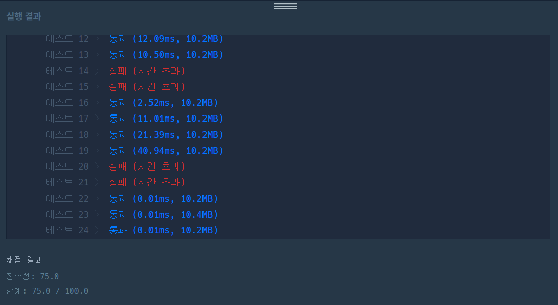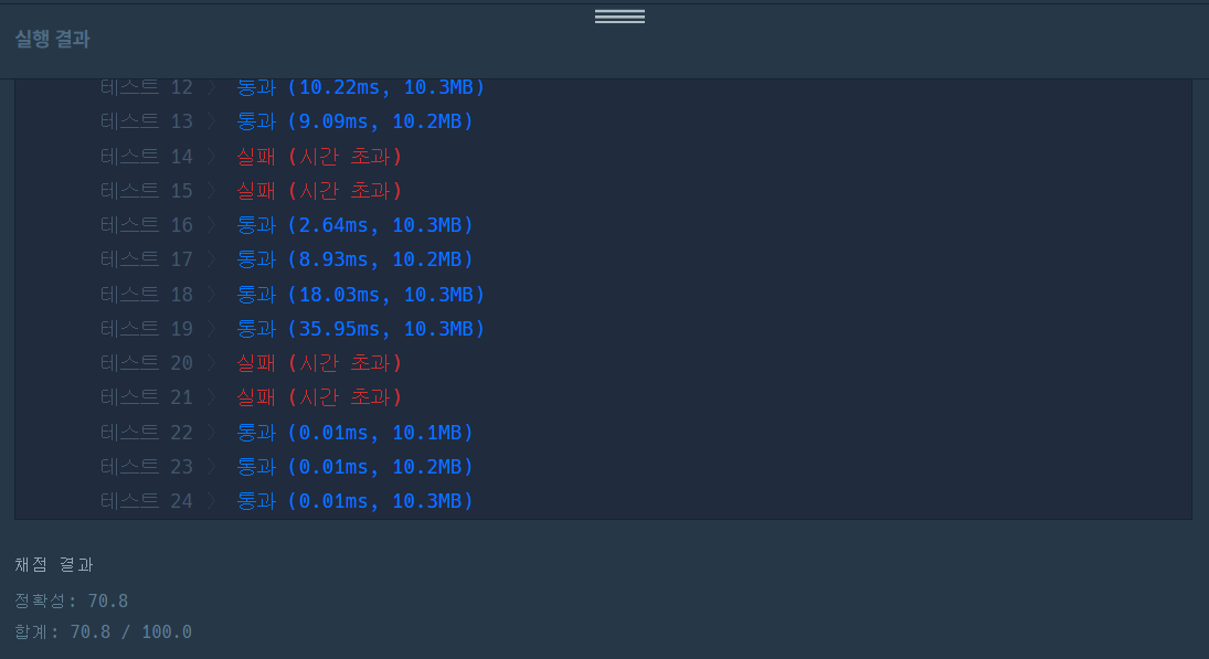 정답은 맞았지만 시간 초과로 틀리게 되었다.