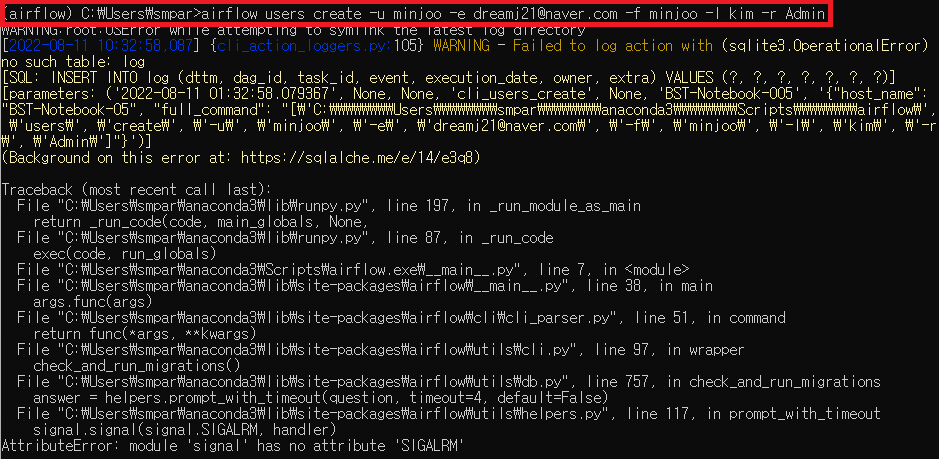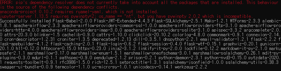 그리고 위의 명령어로 Airflow를 설치하니, 잘 설치되다가 마지막에 저런 에러가 떴습니다.