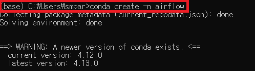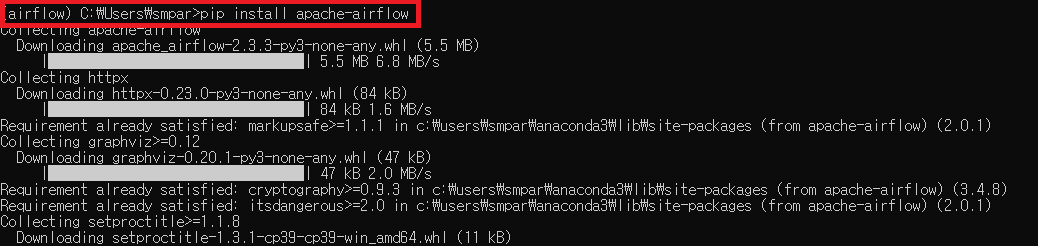 일단 Anaconda에 'airflow'라는 이름의 가상환경을 만들어주었습니다.