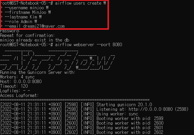 # Airflow 웹 서버 띄우는 명령어